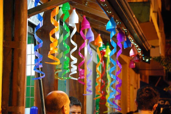 ah, les bouteilles au plafond ... non, pas vraiment mon idée de décoration intérieure. Mais les bouteilles avec de la nourriture pour oiseaux, oui, on fait comme ça pendant l'hiver. Et les écureuils en profitent aussi, les malins!