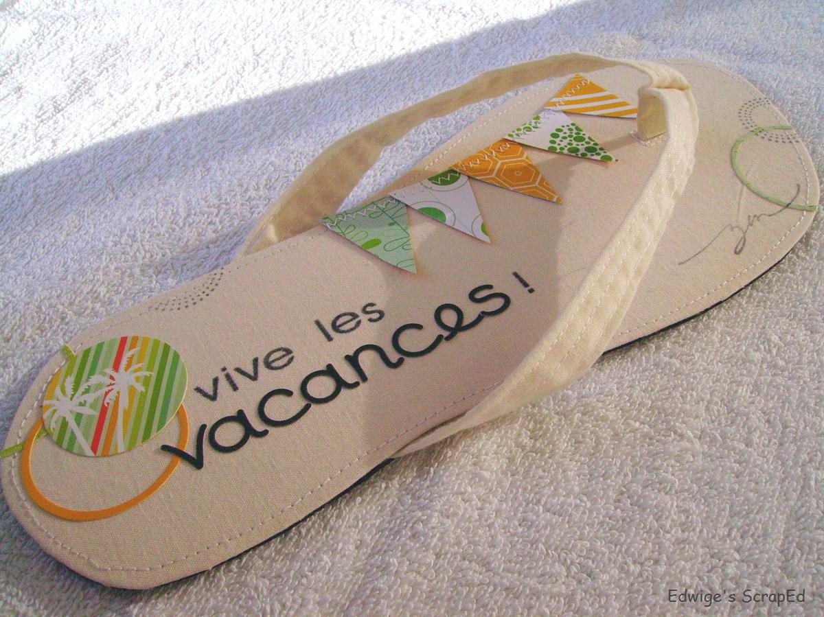 Merci pour nous faire rêver de vacances avec toutes ces tongs ah non ce sont les "savates 2 doigts" des Antilles!!!!!!!!!!!!!! les créoles disent toujours comme ça.Scrapbisouilles.