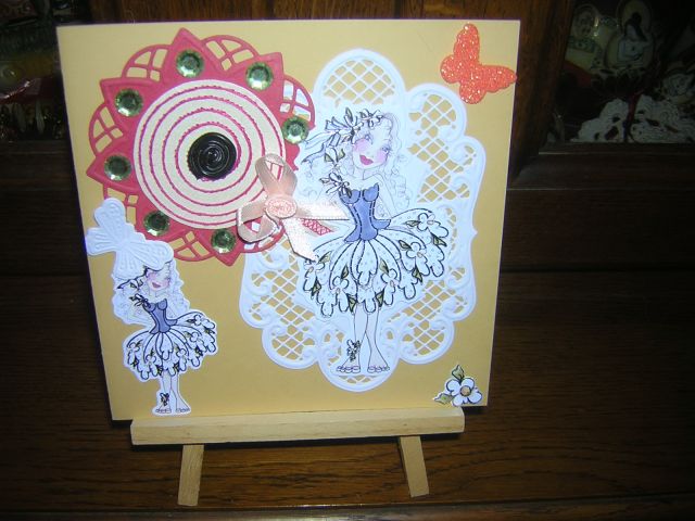 Pour finir je vous présente une jolie carte de Jeannine ou Hirondelle sur le Net avec de belles découpes et de jolies demoiselles!