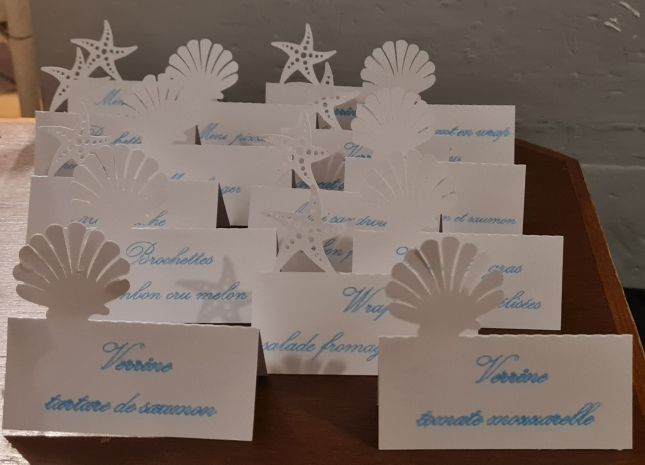 et des marques places pour noter le nom des différentes verrines du buffet