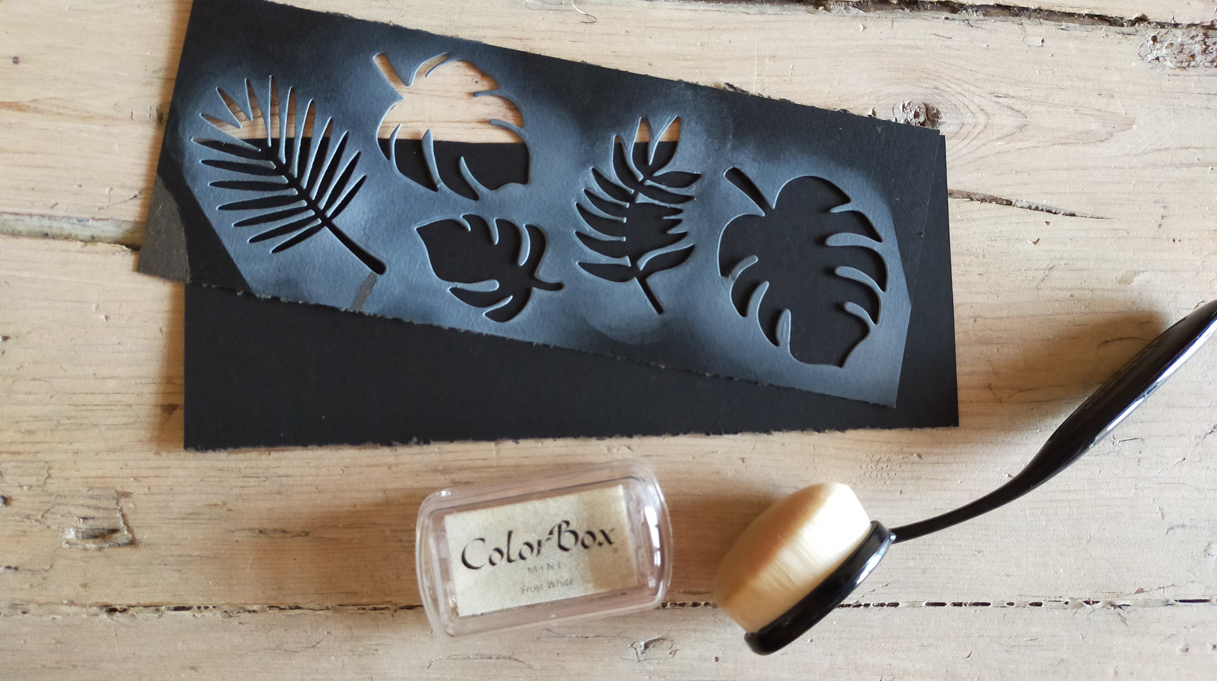 A l'aide d'une brosse et d'un pad d'encre blanche vous frottez délicatement dans les formes du pochoirs pour y déposer la teinte